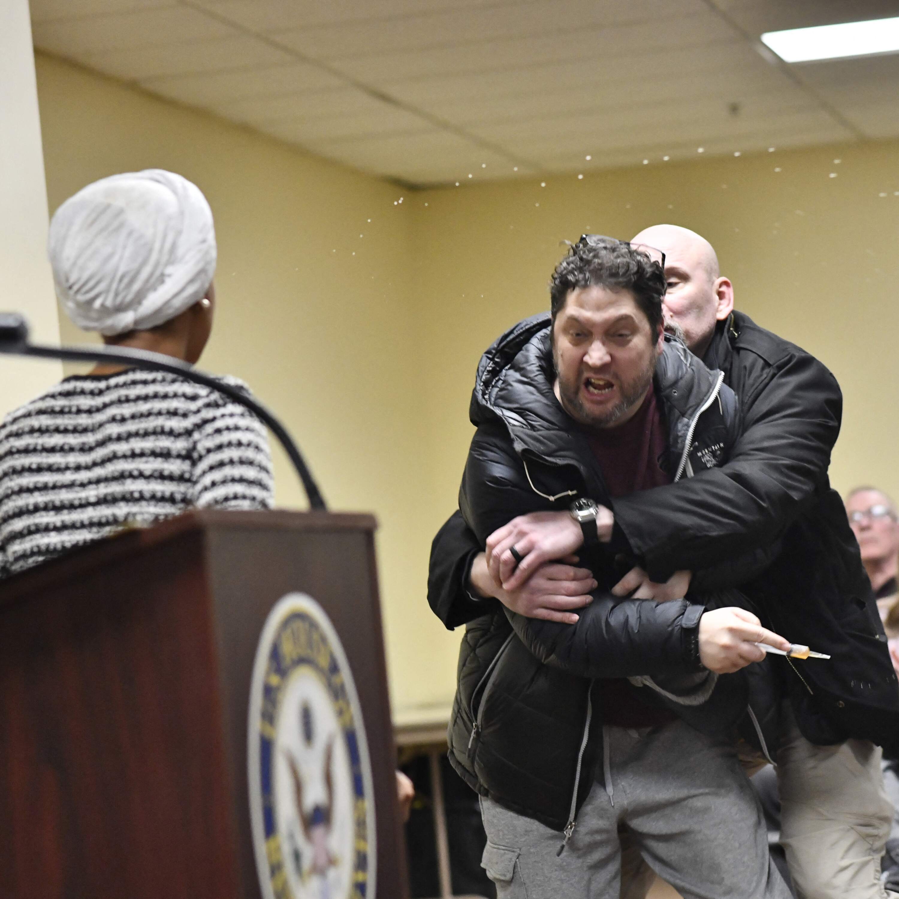 A man rushed towards Minnesota Rep. Ilhan Omar during an event in her home state on Tuesday, spraying the congresswoman with a liquid authorities later identified as vinegar. President Donald Trump told reporters later that evening he thought there was a chance that Omar had staged the attack herself as a stunt.