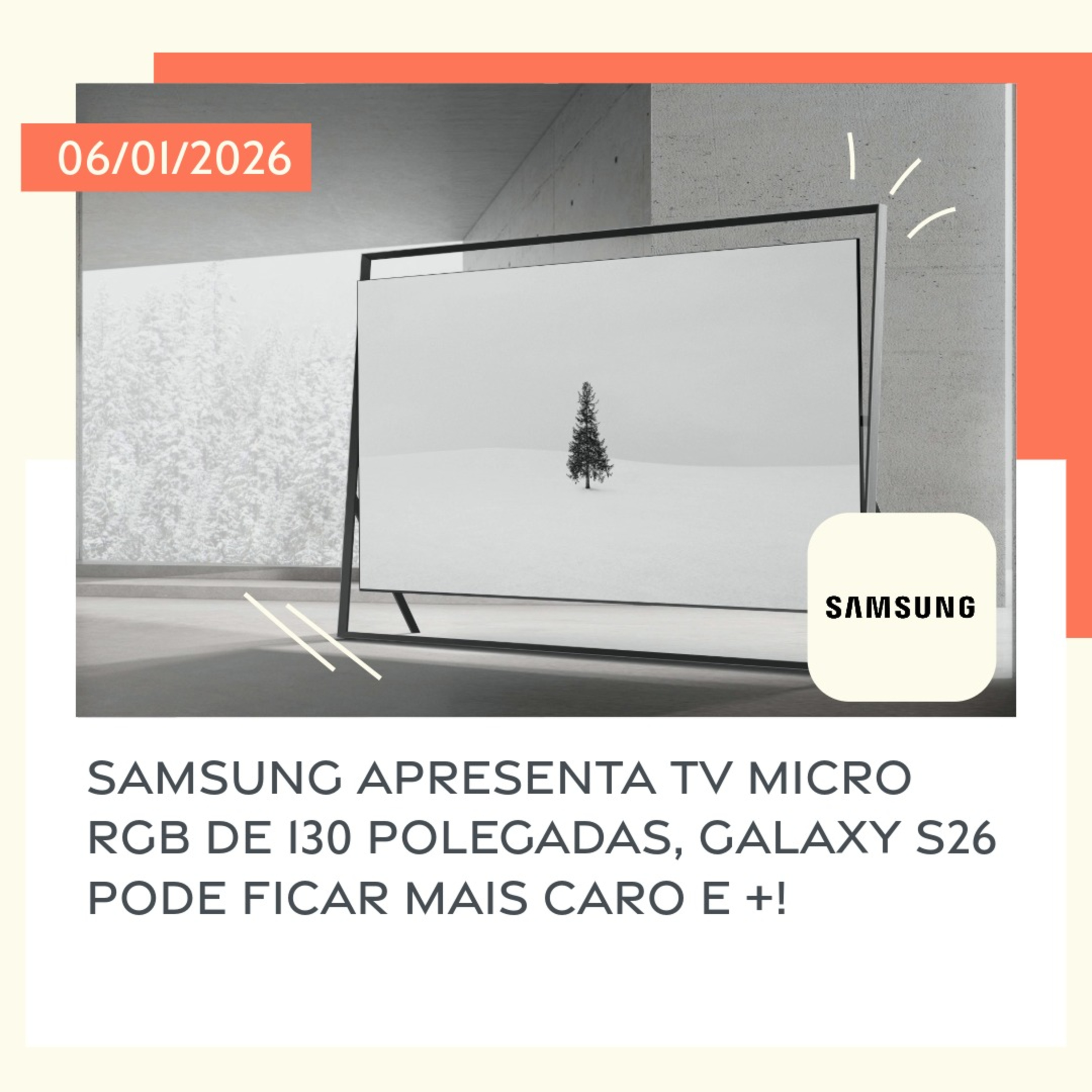 06/01/2026 – Samsung apresenta TV Micro RGB de 130 polegadas, Galaxy S26 pode ficar mais caro e +!