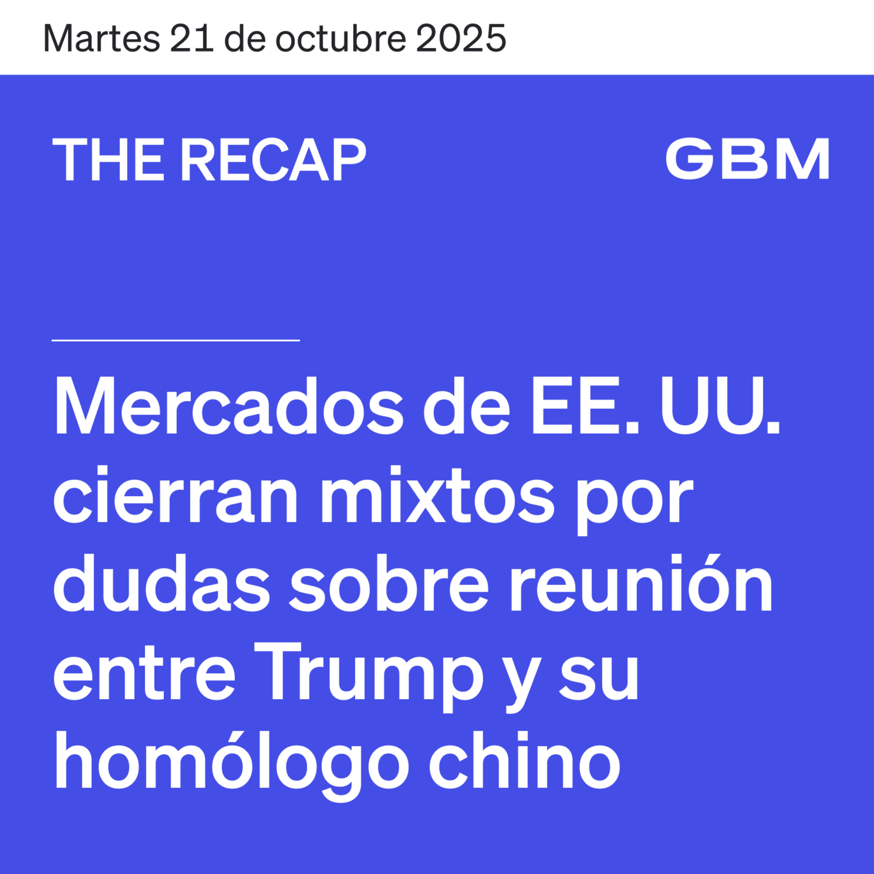 THE RECAP 21-10-25 | Mercados de EE. UU. cierran mixtos por dudas sobre reunión entre Trump y su homólogo chino