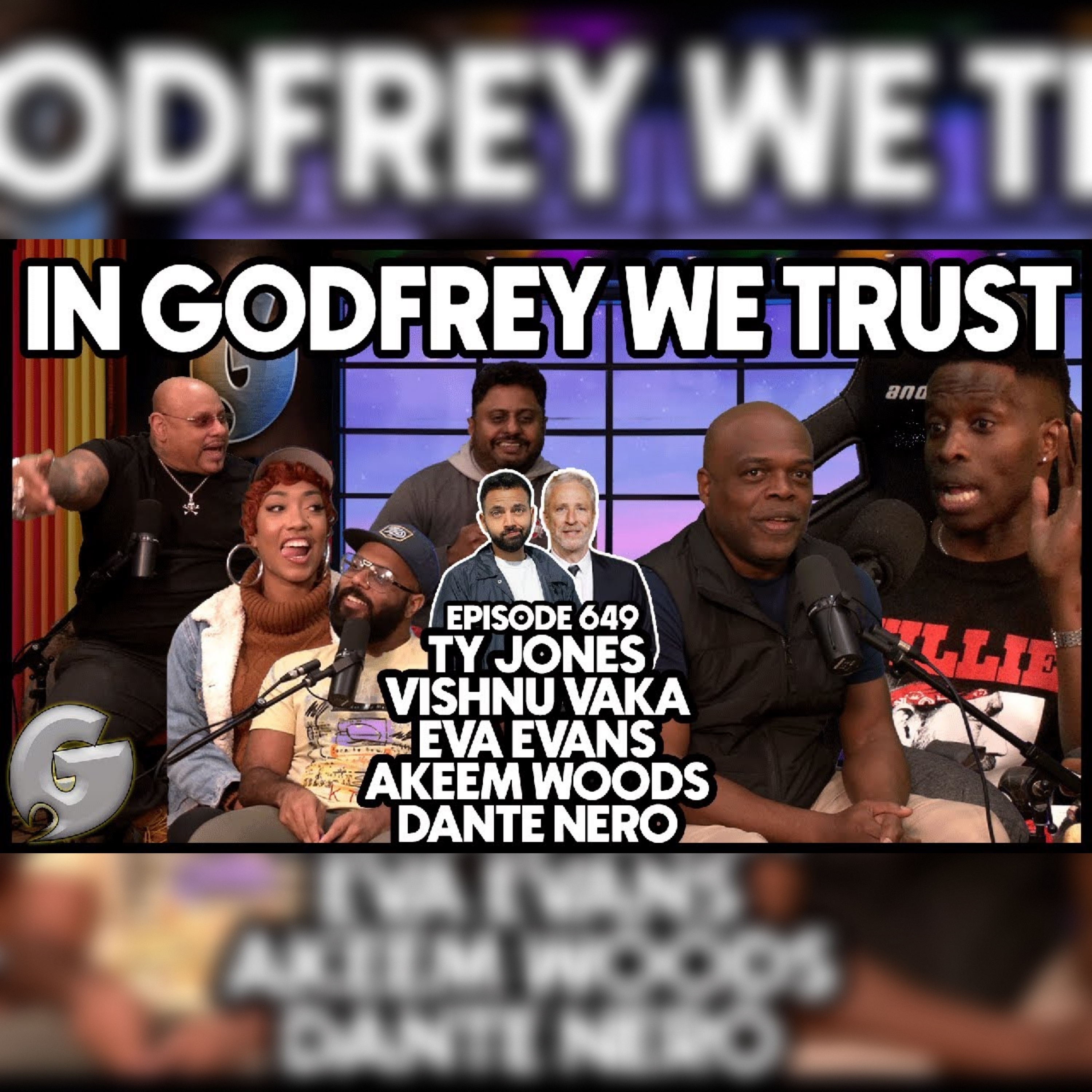 Godfrey is joined by Ty Jones, Vishnu Vaka, Eva Evans, Akeem Woods & Dante Nero to discuss who's got cornier shoes, a discussion on faith via batteries and so much more!