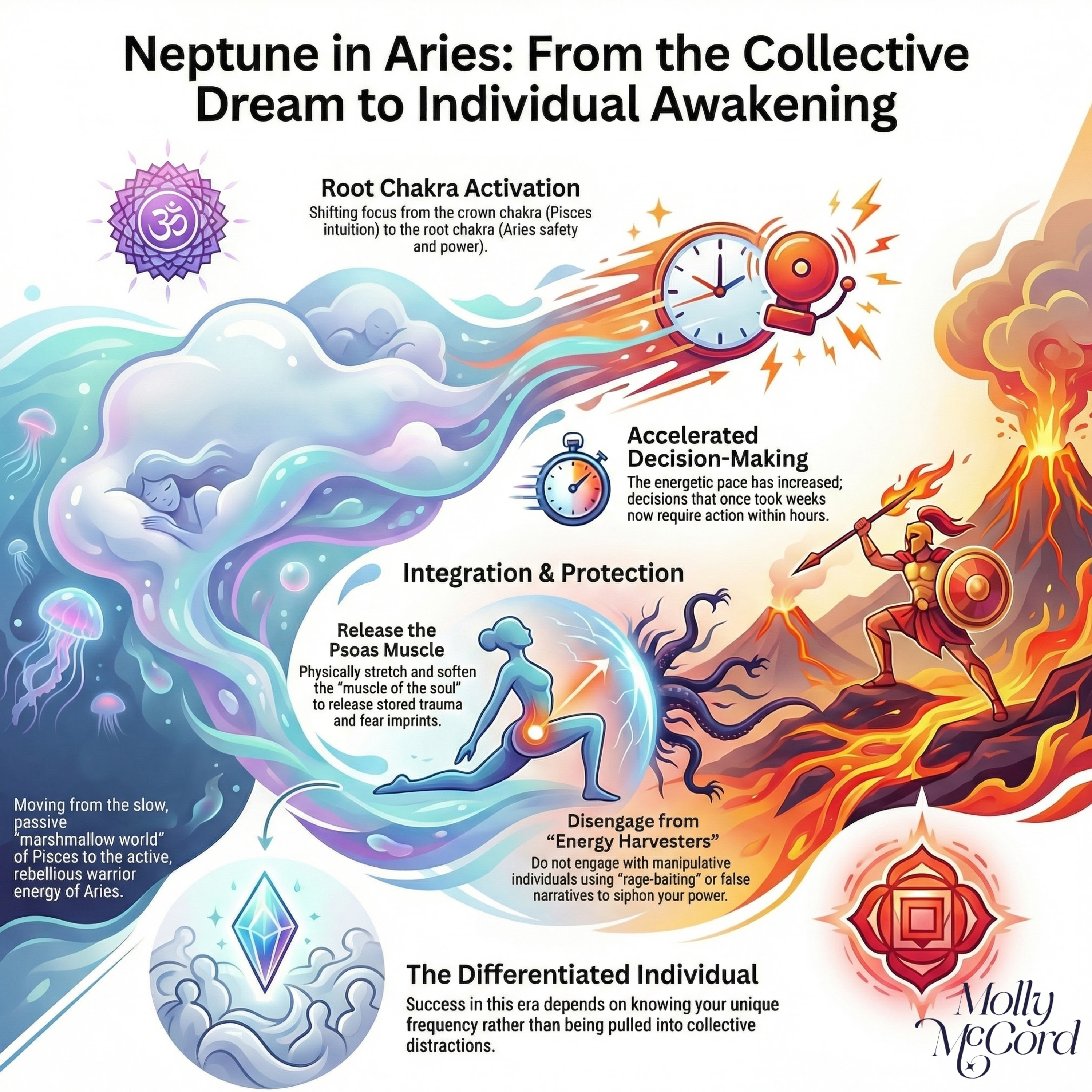 A powerful energetic shift unfolded as Neptune moved from Pisces into Aries on January 26, a dramatic awakening from years of spiritual drifting into a new era of activation, courage, and self-leadership. Neptune’s long transit through Pisces emphasized intuition, surrender, and collective dreaming, while its entry into Aries—amplified by a strong Aquarius stellium and Mars conjunct Pluto—has ignited faster, more decisive, and embodied energies tied to independence, empowerment, and revolutionary change. This shift is being felt mentally, emotionally, and physically, including through the psoas muscle as a storage center for survival patterns and trauma. Conscious movement and body awareness can support softening the psoas as well as integration. The broader collective dynamics of exposure, accountability, and the collapse of old power structures will continue, and it's key not to engage with manipulative or fear-based tactics; instead, remain grounded, sovereign, and energetically strong. Neptune in Aries is a major initiation point, calling each person to embody their truth, trust their inner guidance, and step fully into a new phase of personal and collective evolution as the pace of change accelerates.