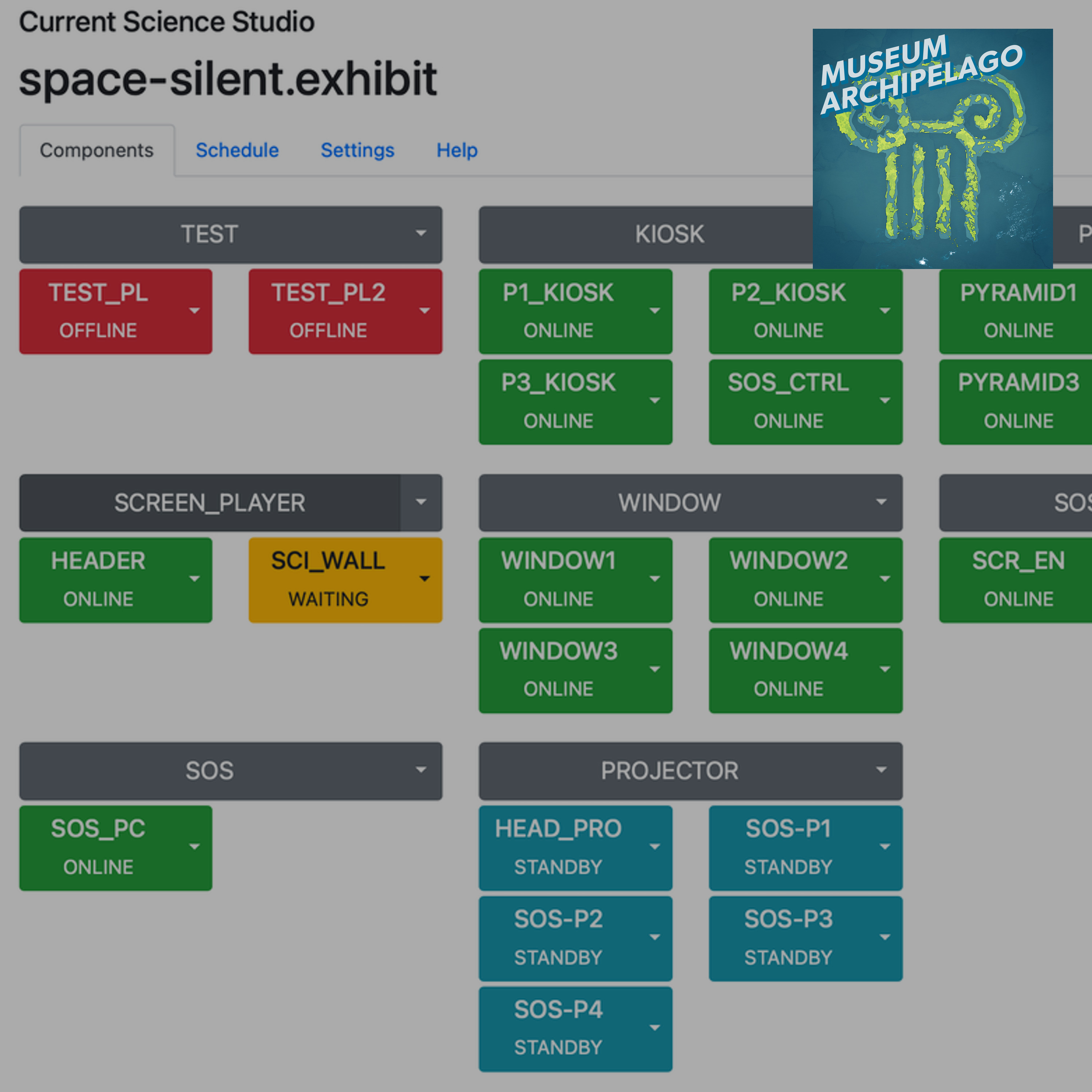 But then there's this thing called Constellation Control Server. And the idea here is, let's have a central server that communicates with all of the other Constellation components in the exhibit. And can help me remotely diagnose and remotely repair these things. So if one of those exhibit pieces has stopped checking in, I get an, I can see that on my dashboard and I can easily press a button from my desk to reboot that computer, cause maybe the app is still running, but I got a call in from somebody in guest services saying a kid's playing solitaire on the computer.