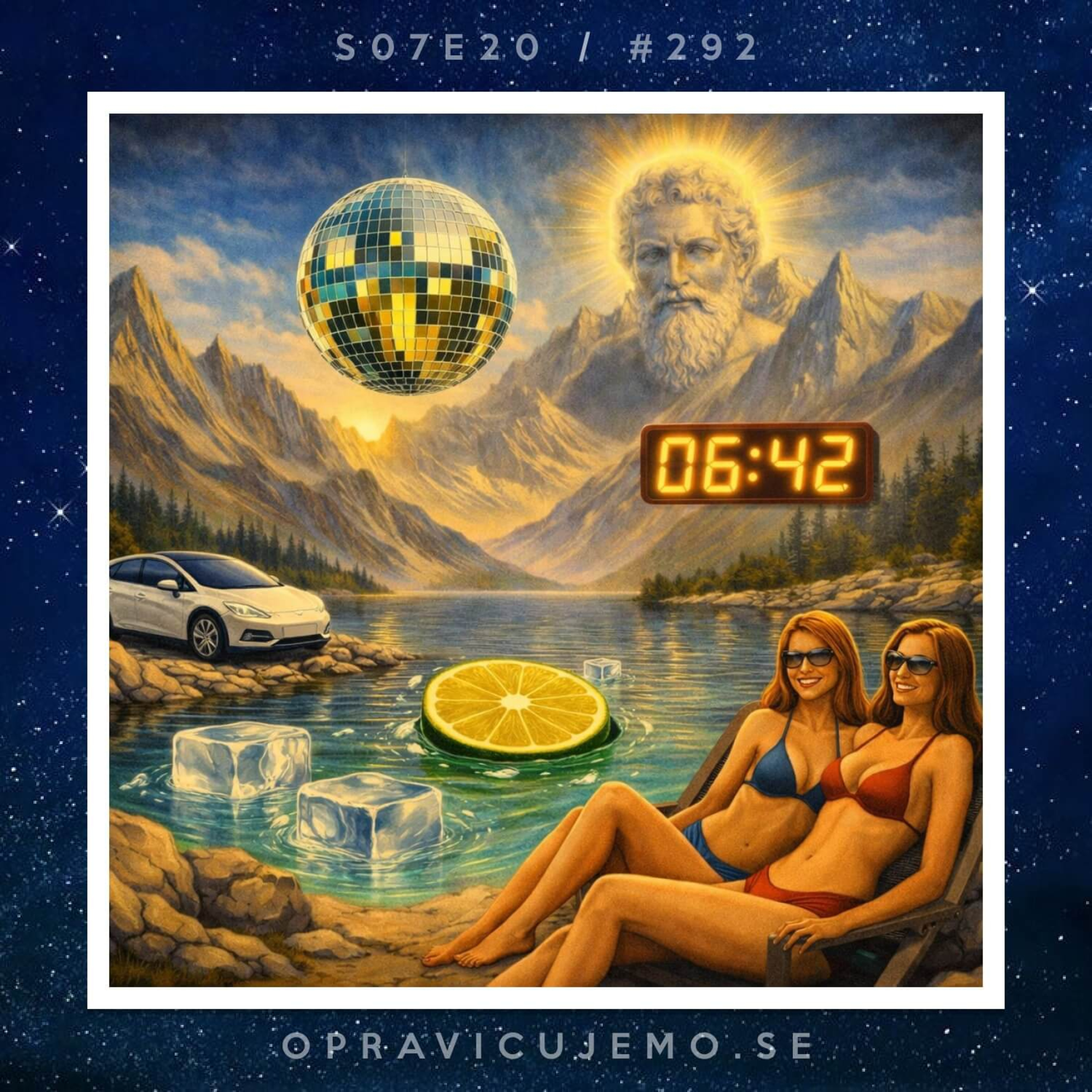 Zdravo. V letošnji novoletni epizodi se z vso resnostjo lotimo (prvega dela) pregleda leta in ga že kaj kmalu tudi sami sabotiramo. Začnemo s stvarnikom, goloto, silikonskimi joški, kraguljčki, nadaljujemo z optimizmom, depresijo, svetlečo prihodnostjo, električno mobilnostjo in se ustavimo pri jezeru, ki se je delalo, da je gin s tonikom.