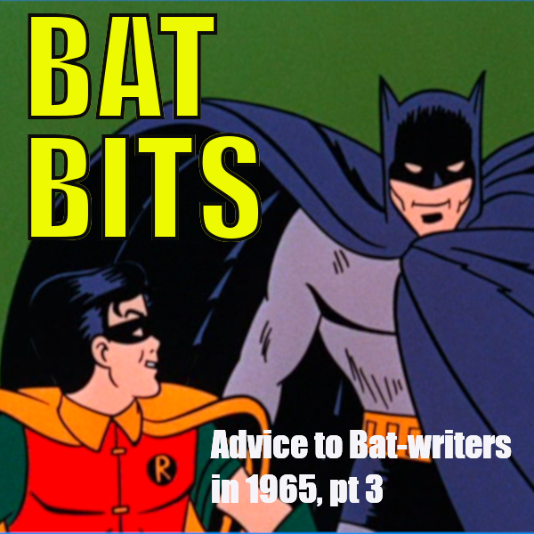 Why Batman doesn't carry a gun, and focuses on reforming crooks. How to write Bruce Wayne (square, not stupid!) Keeping the camp incidental to the show; he only goes to the disco because that's where his crime investigation leads him. Our discussion of Lorenzo Semple's 14-page "Batnotes" memo continues!