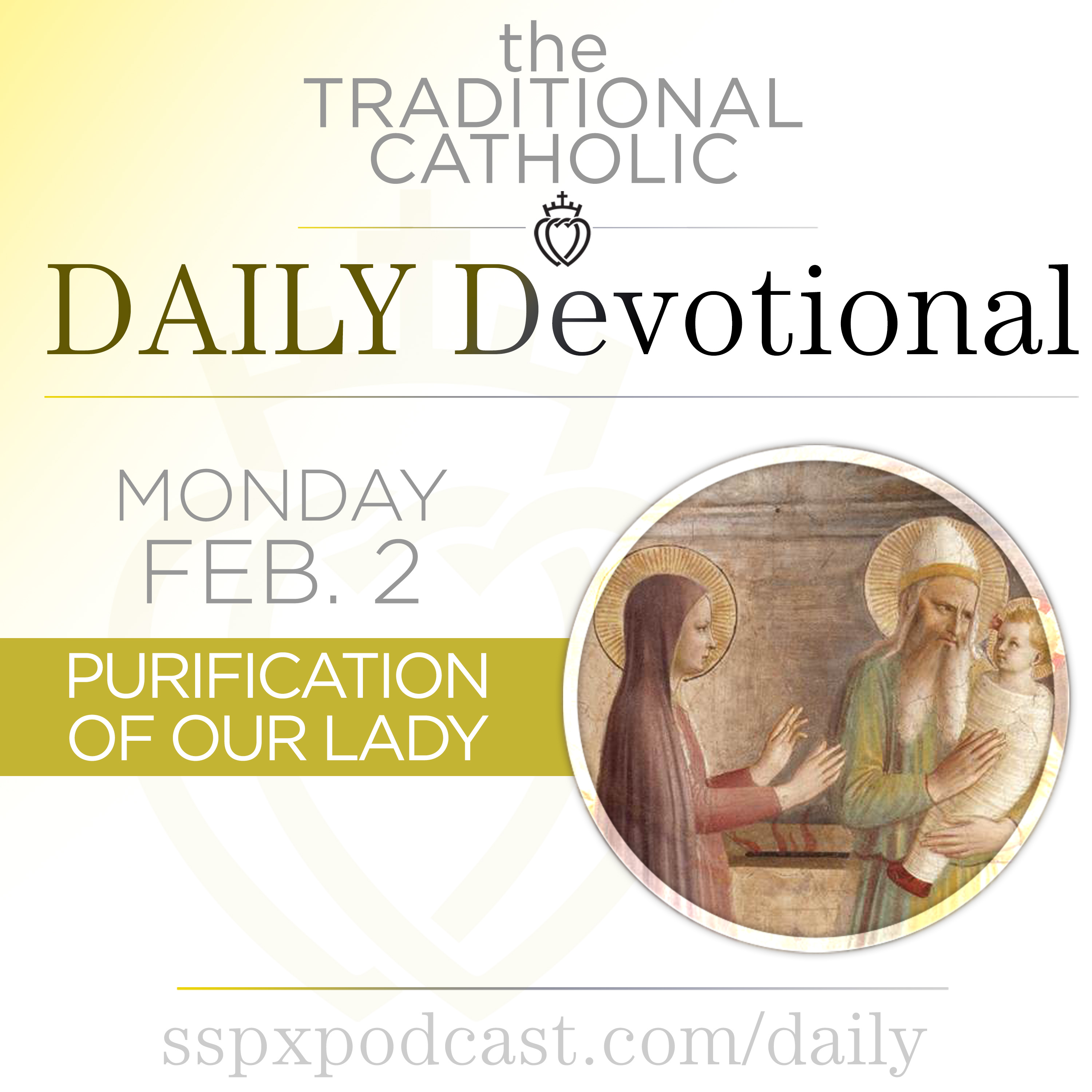 It’s the Feast of Purification of the BVM, 2nd Class, with the color of White. In this episode: the meditation: “Jesus, Source of Pacification”, today’s news from the Church: “First Victory in the French Senate Against the Euthanasia Law”, a preview of the Sermon: “Candlemas: Fulfillment and the Great Meeting”, and today’s thought from the Archbishop.