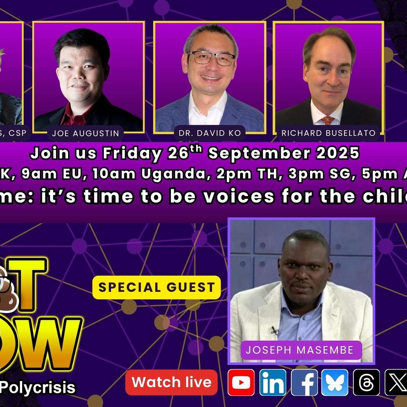 The Sh*t Show is a Livestream happening every Friday, where Andrea T Edwards, Dr. David Ko, Richard Busellato and Joe Augustin, as well as special guests, discuss the world’s most pressing issues across all angles of the polycrisis, working to make sense of the extremely challenging and complex times we are all going through, plus what we can do about it. Help us move the needle so we can change the name of the show to something more genteel when (or if) it is no longer a sh*t show.