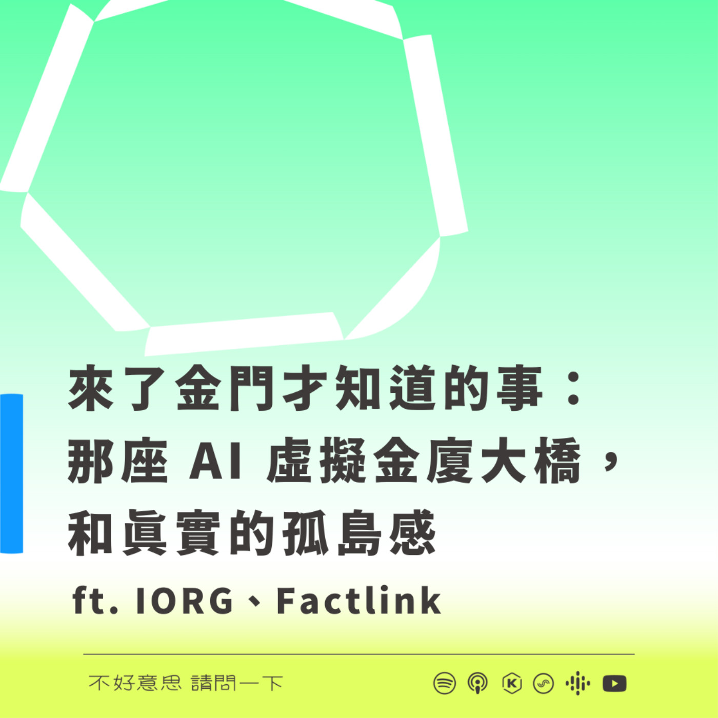 這一集,記錄我們在金門學到的事,包括致昕的六位資訊環境的研究者,在金門的活動之後立刻坐了下來,彼此交換正在想的事、感受到的事、想改變的事。