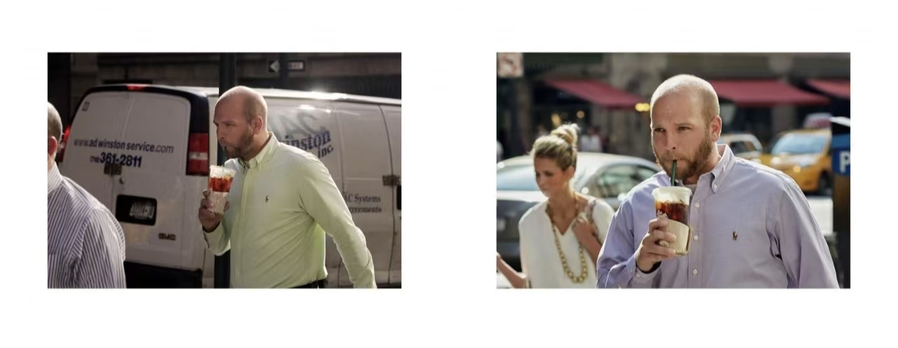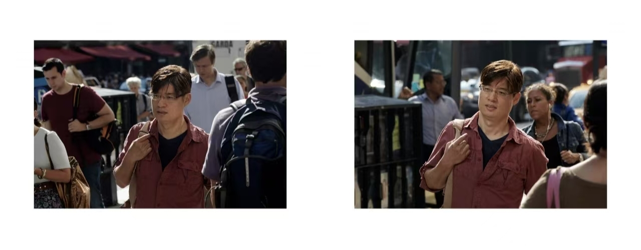 9年后,他又来到同样的时间,同样的地点,发现9年前拍摄的那些路人,大部分都还在,面貌变化不算大,同样的步履匆匆,同样的姿态,同样的神情,甚至很多人还穿着9年前同样的衣服。